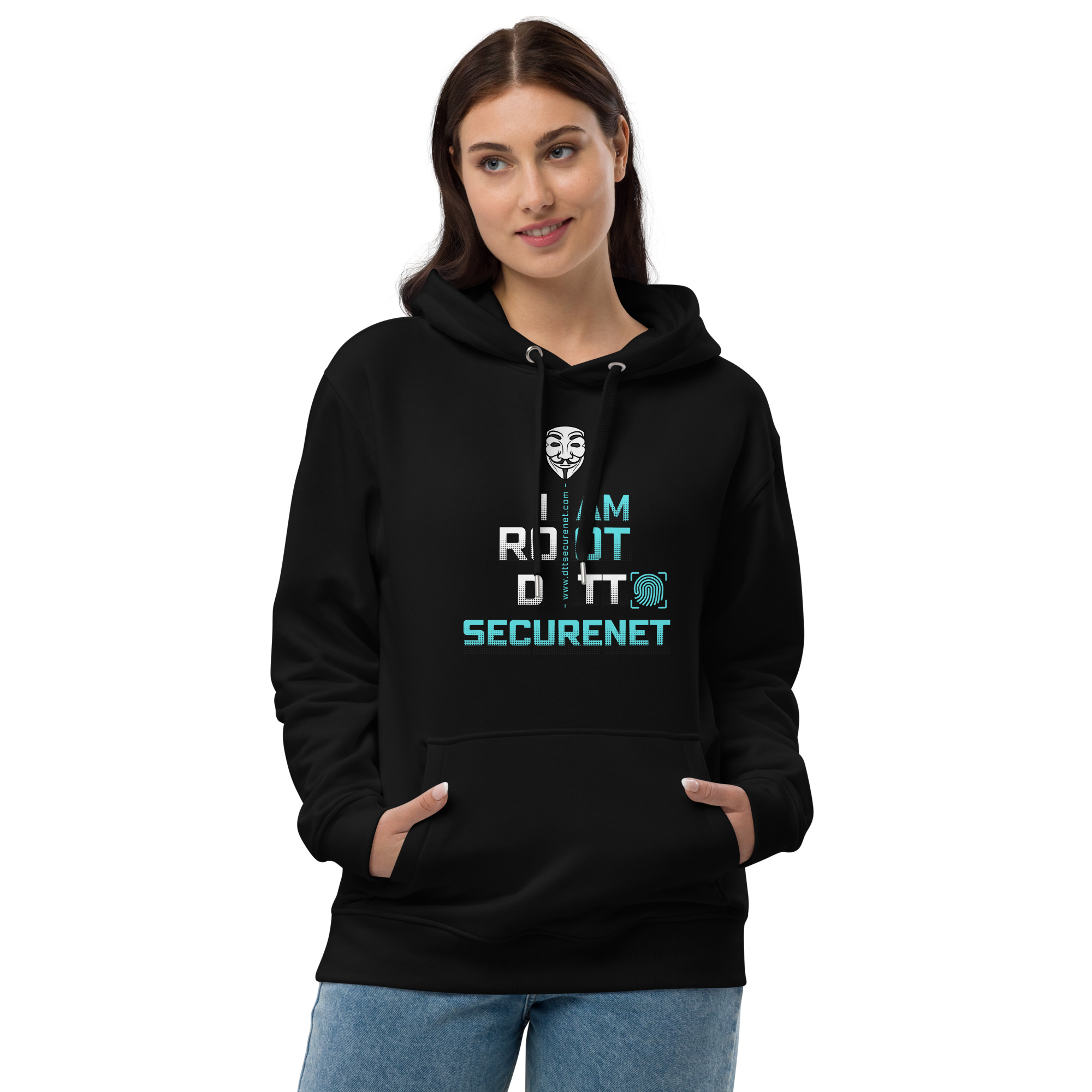 Premium eco hacker’s hoodie made of organic and recycled materials. Front pouch pocket, and double-layered hood, classic streetwear, super comfortable for all ocassions and for all your activities.
